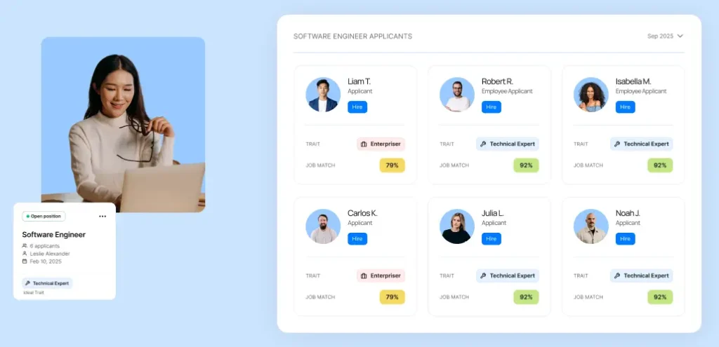 Our platform simplifies the hiring process by combining personality insights with smart technology to help you find the perfect fit for your team.